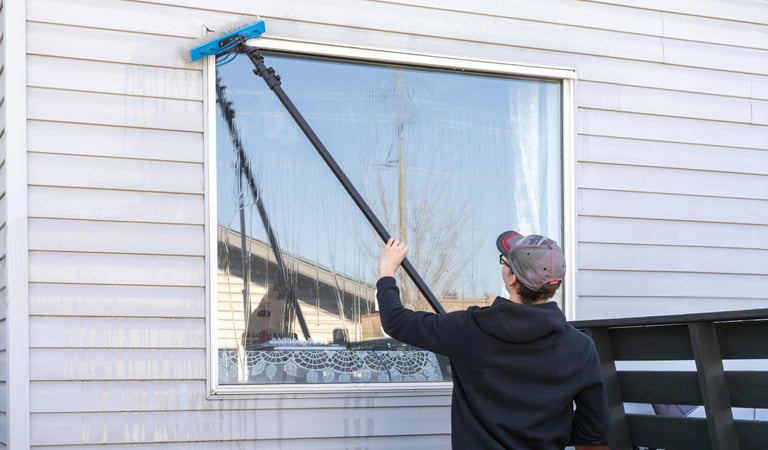 Our team uses advanced, eco-friendly equipment to give your windows a spotless finish. We don’t rely on harsh chemicals or quick wipes. Instead, we use a four-stage reverse osmosis and deionized filtration system that leaves zero residue on your windows. Paired with long-reach water-fed poles, we clean even second- and third-story windows safely from the ground, giving you professional results without any risk to your home or landscaping.