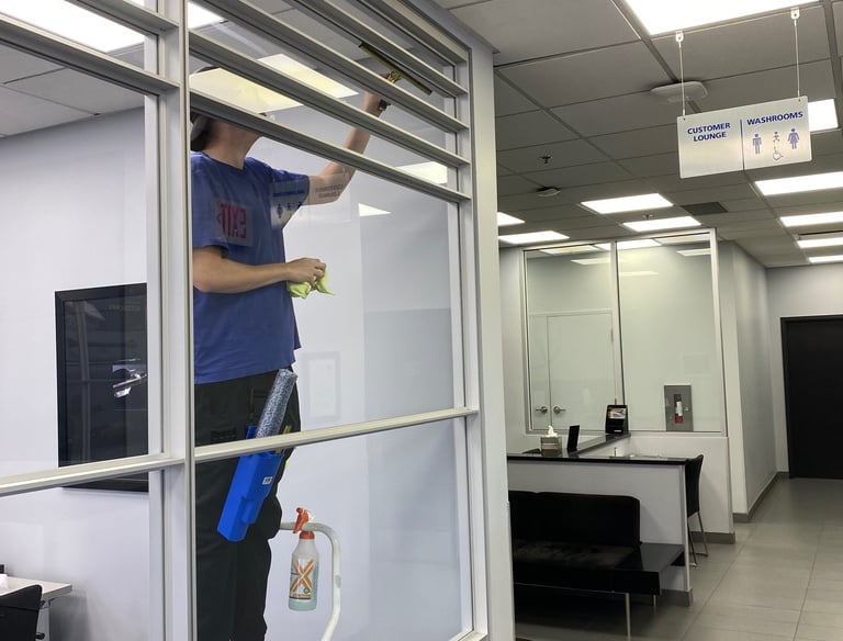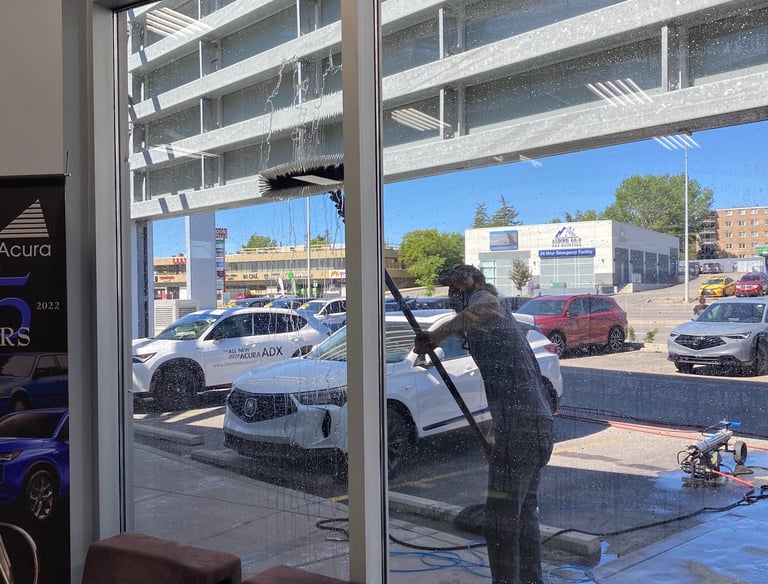 Professional window cleaning for offices, storefronts, and dealerships across Calgary.